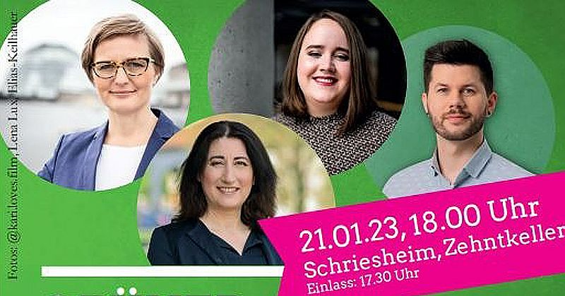 Wir haben prominente Gäste: Unsere grüne Bundestagsabgeordnete und Klima-/Wirtschafts-Staatssekretärin Franziska Brantner, unsere Bundesvorsitzende Ricarda Lang, den Landesvorsitzenden Ba-Wü Pascal Haggenmüller und natürlich unsere Landtagsabgeordnete und Kreisvorsitzende Fadime Tuncer. Musikalisch begleitet wird der Abend von der fünfköpfigen Band Ukulayers.