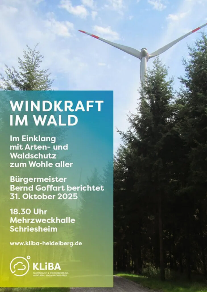 Für ganz Kurzentschlossene bzw. als Erinnerung: Am Erscheinungstag dieser Ausgabe – Freitag, 31. Oktober, 18:30 – findet in der Mehrzweckalle Schriesheim ein Vortrag des gerade mit großer Mehrheit wiedergewählten Bürgermeisters von Simmerath, Bernd Goffart (CDU), über den Bürgerwindpark in seiner Gemeinde statt.